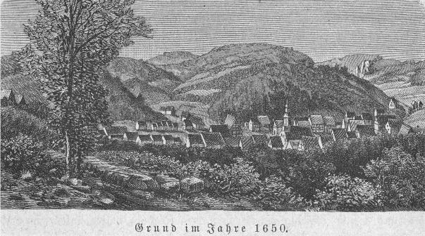 1567 gab es in Grund 89 Familien mit 360 Einwohnern in der Bergstadt.